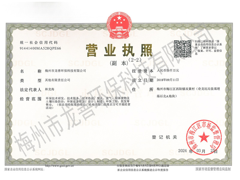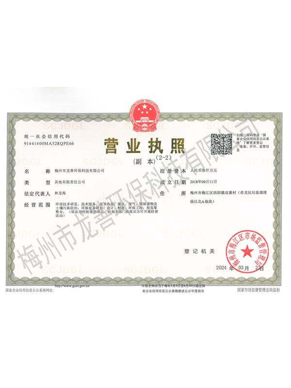 梅州市龍善環(huán)保科技有限公司為龍善環(huán)保股份有限公司(簡(jiǎn)稱(chēng)“龍善環(huán)?!保┳庸?。龍善環(huán)保于1995年12月成立,注冊(cè)資本為人民幣6,000萬(wàn)元,總部位于深圳市南山區(qū)月亮灣大道2078號(hào)兆龍大樓16層。公司經(jīng)生態(tài)環(huán)境部、廣東省生態(tài)環(huán)境廳、深圳市生態(tài)環(huán)境局、深圳市交通運(yùn)輸委員會(huì)、深圳海事局等部門(mén)許可專(zhuān)業(yè)從事陸地和海洋環(huán)境保護(hù)產(chǎn)業(yè)的高科技民營(yíng)企業(yè),主要經(jīng)營(yíng)業(yè)務(wù)包括工業(yè)廢物收運(yùn)、資源化利用和無(wú)害化處理處置、海洋船舶污油水接收和集中處理處置、突發(fā)環(huán)境事故清污應(yīng)急處置等......